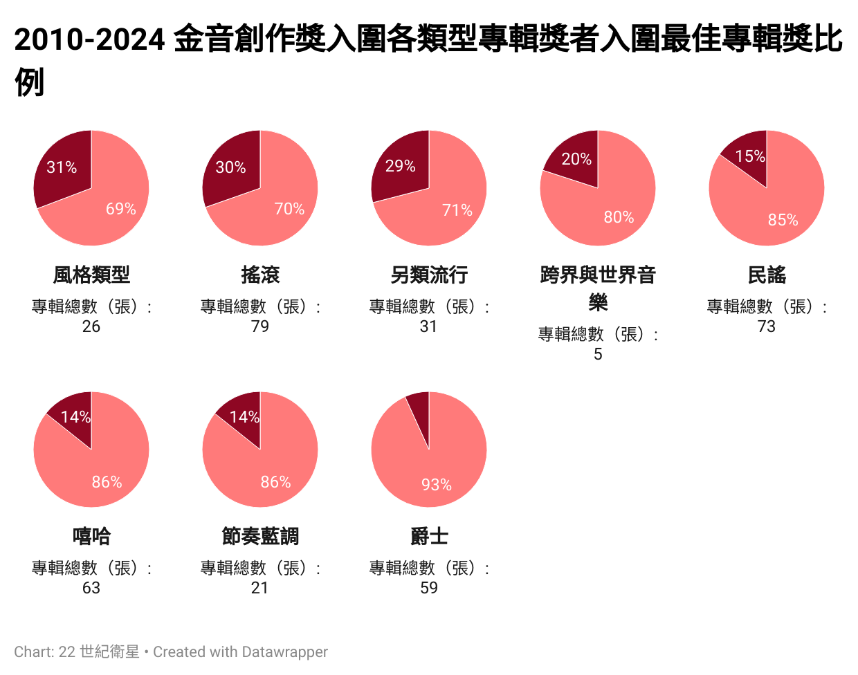 其中光看最佳專輯獎的得獎比例是這樣: