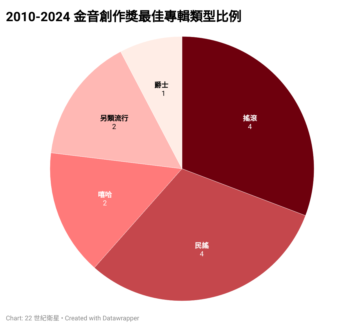 我們以前談過幾次各種音樂獎的制度了,本週適逢金音創作獎公布入圍名單,我想用幾張簡單的圖表快速跟你聊聊這個獎一項耐人尋味的地方。